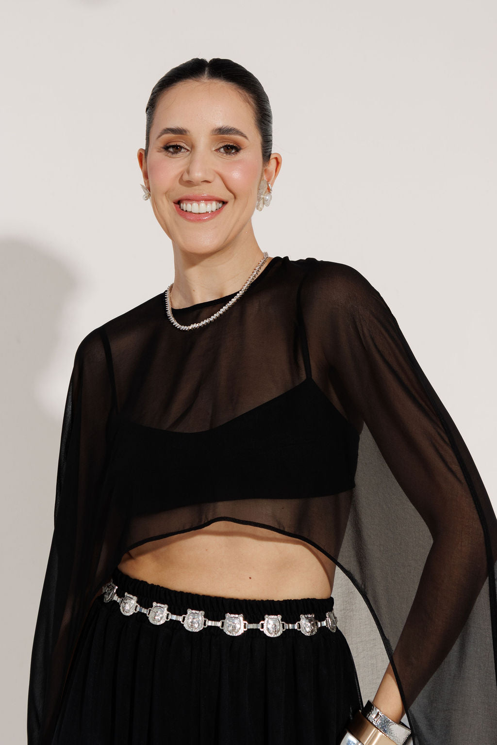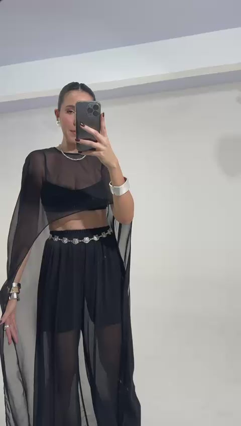 A blusa capa MULET é a definição de sensualidade e elegância contemporânea.