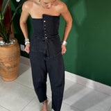 A blusa jeans tomara que caia assimétrica é a peça perfeita para unir estilo e originalidade. Confeccionada em jeans 100% algodão, ela traz estrutura firme, caimento impecável e um visual moderno. O design tomara que caia com barra assimétrica destaca a silhueta e valoriza o colo, criando um visual autêntico e contemporâneo. Ideal para composições urbanas e fashionistas.