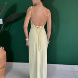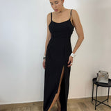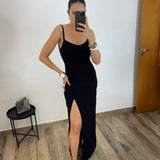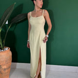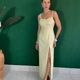 Este vestido longo de linho é a união perfeita entre elegância e sensualidade. Com um toque sofisticado, ele possui um forro confortável e elastano que proporciona flexibilidade e ajuste ao corpo. O decote nas costas adiciona uma dose de sensualidade, enquanto a fenda frontal traz um ar moderno e ousado. Ideal para ocasiões que pedem um look marcante e sofisticado.