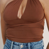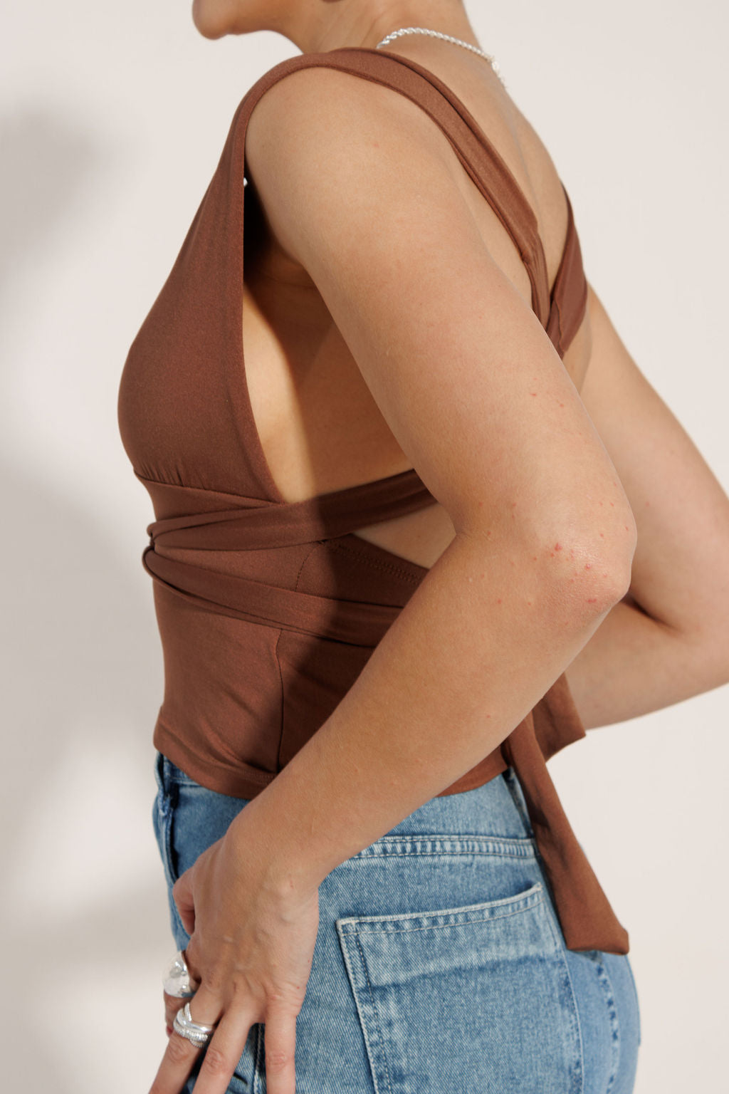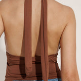 Ajuste as amarrações conforme o estilo desejado — no pescoço, cruzada ou tomara que caia — para um visual versátil e moderno.