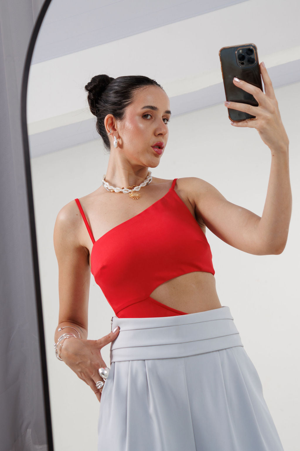 O Body com Decote Assimétrico e Detalhe Vazado na Lateral é uma peça moderna e marcante, pensada para valorizar a silhueta com elegância e personalidade. Seu design contemporâneo traz um decote assimétrico, que foge do óbvio e adiciona sofisticação imediata ao look.