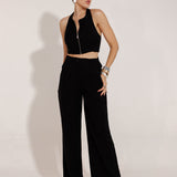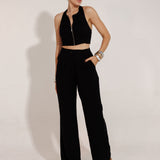 Composto por um top cropped halter e uma calça pantalona fluida, o duo traz uma proposta elegante, feminina e extremamente confortável, ideal para quem busca presença e suavidade em uma única produção.