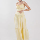 O Conjunto Saia e Cropped é a união perfeita entre feminilidade, leveza e sofisticação. Com design delicado e caimento impecável, ele valoriza a silhueta de forma elegante, sendo ideal para diversas ocasiões.