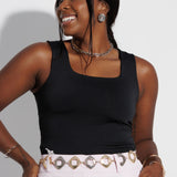 • Decote Quadrado: Adiciona um toque de elegância e sofisticação ao design.
