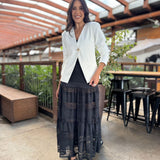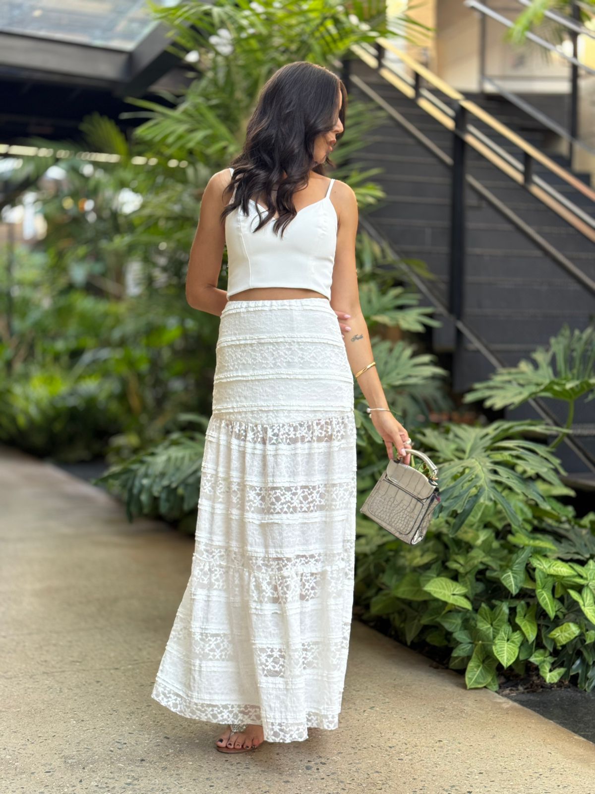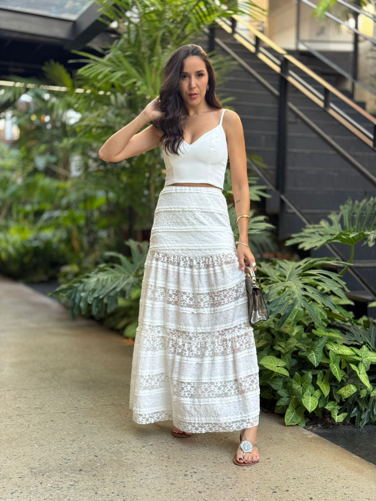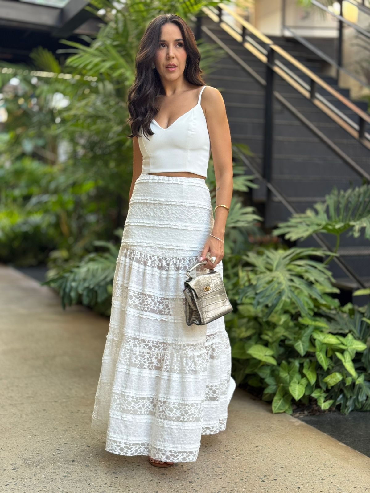 Uma peça que transita entre o romântico e o contemporâneo — perfeita para produções sofisticadas com salto, ou para contrastar com peças mais estruturadas e criar um look fashionista.