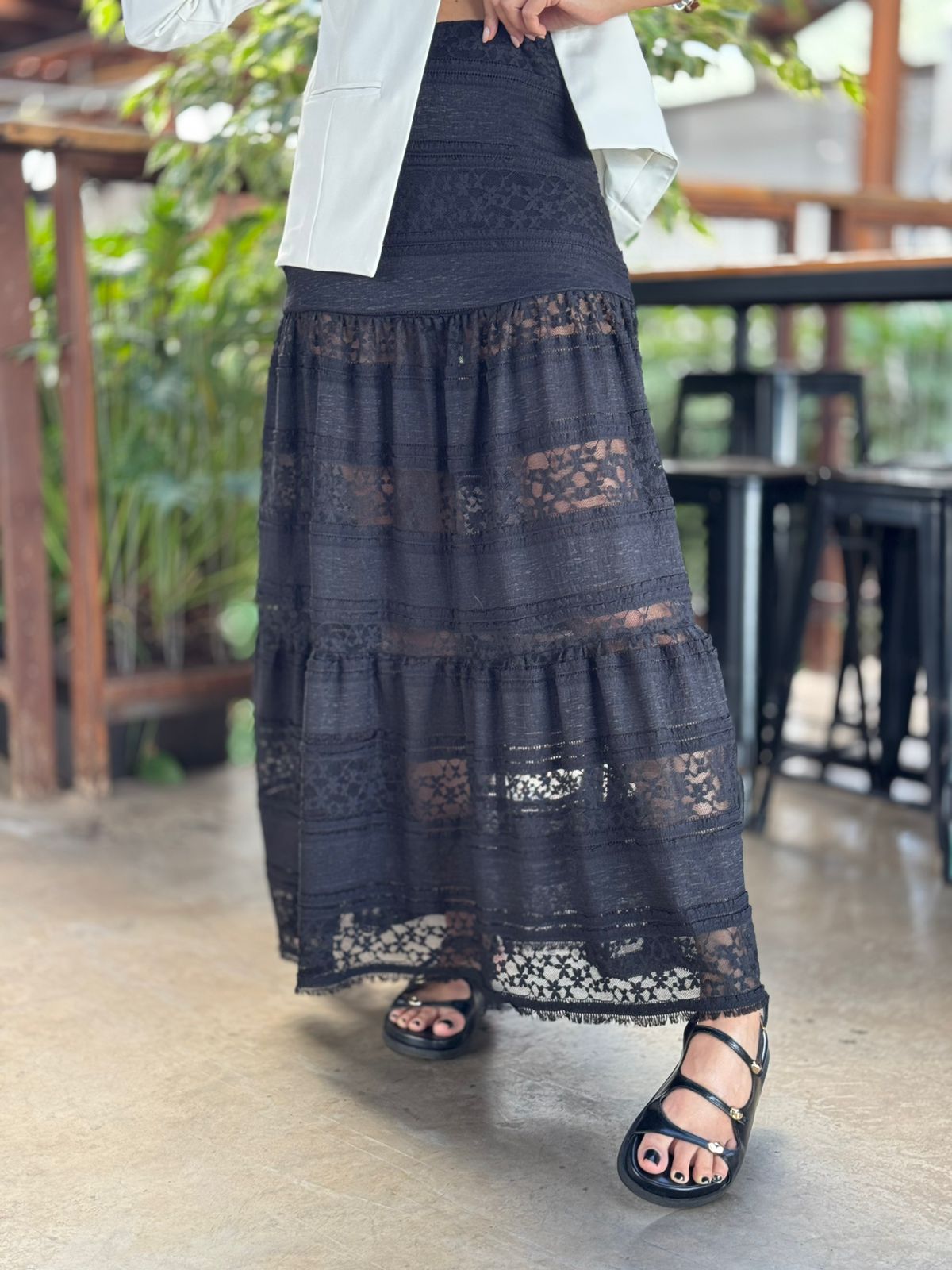 Essa saia longa foi criada para quem ama peças com personalidade. O design sem cós aparente traz um acabamento mais limpo e elegante, enquanto o elástico interno invisível garante conforto e segurança ao vestir — ele se ajusta ao corpo sem marcar ou aparecer.